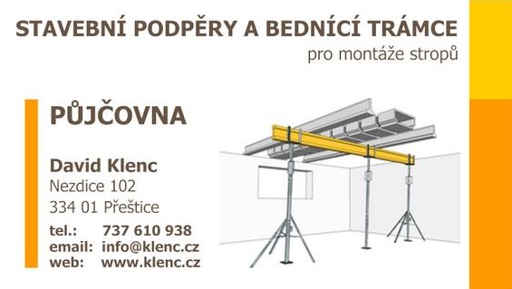 Vaše půjčovna stropního bednění - David Klenc a Michala Klencová, Nezdice u Přeštic, Plzeň-jih